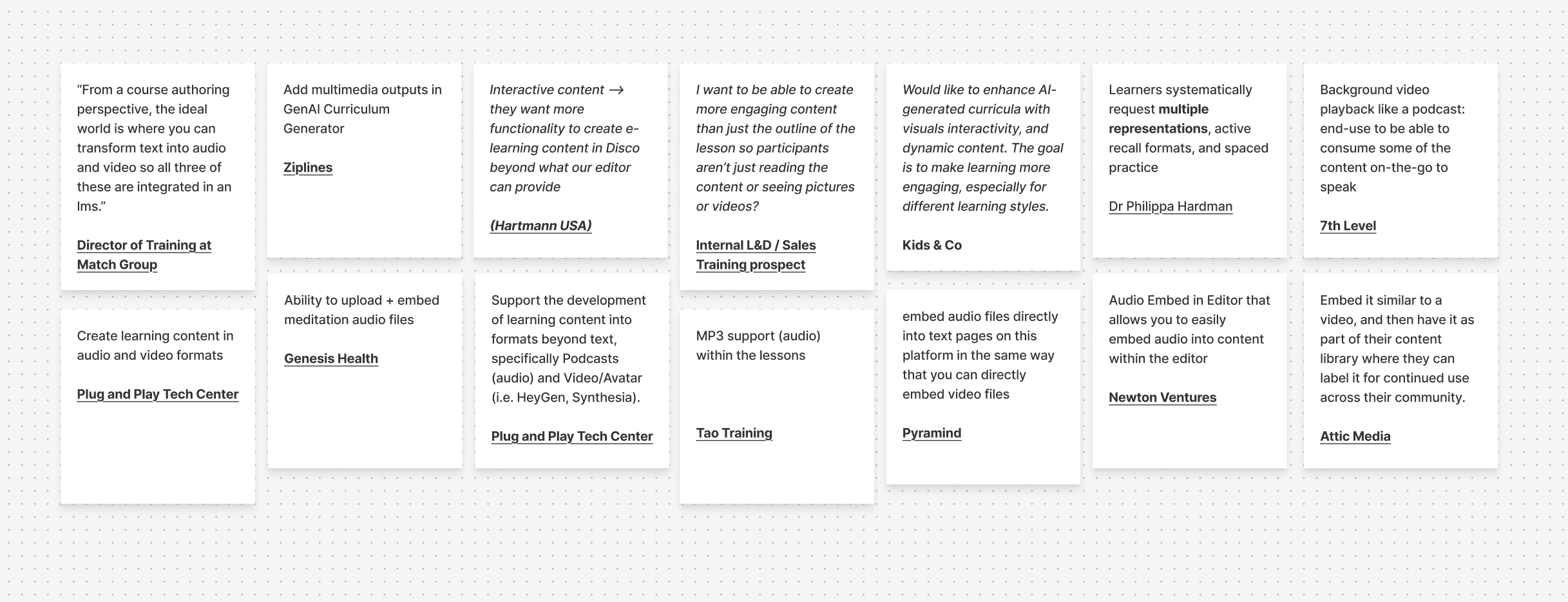 While Disco excelled operationally for admins, our learner experience lagged behind modern expectations. Through a research initiative I led, synthesizing customer interviews, CS feedback, sales insights, and trends in contemporary learning design, we identified a clear pattern.