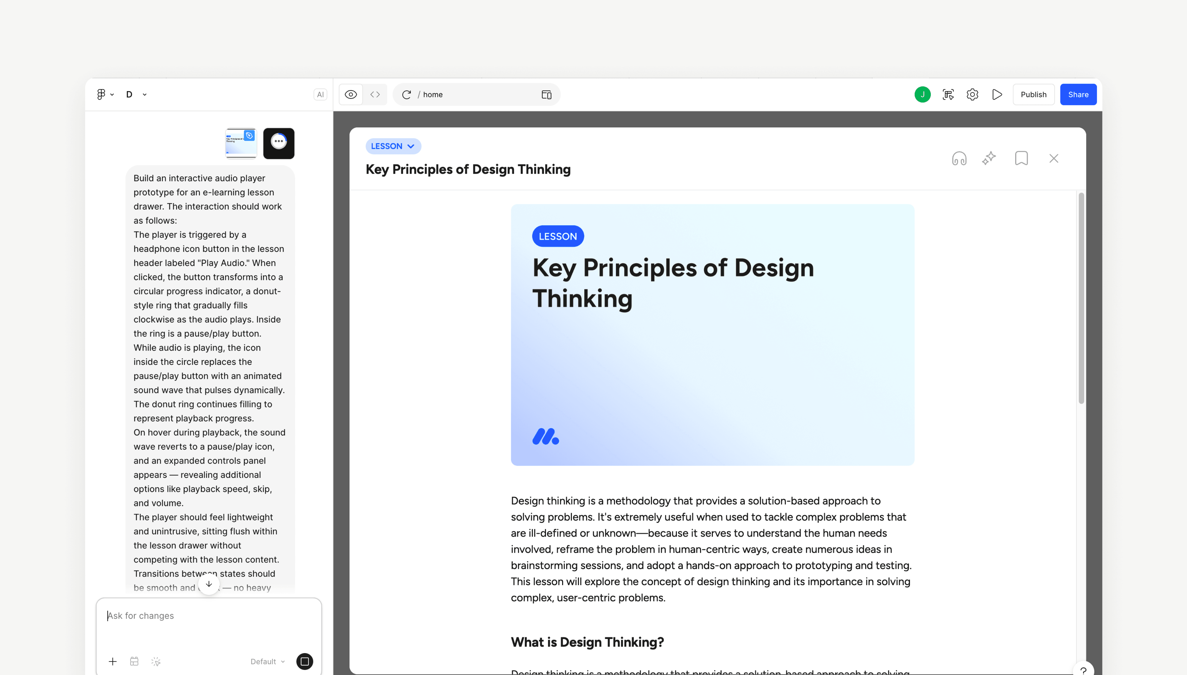 Feel native, not bolted on: On both web and mobile, the audio experience should integrate seamlessly into the product.