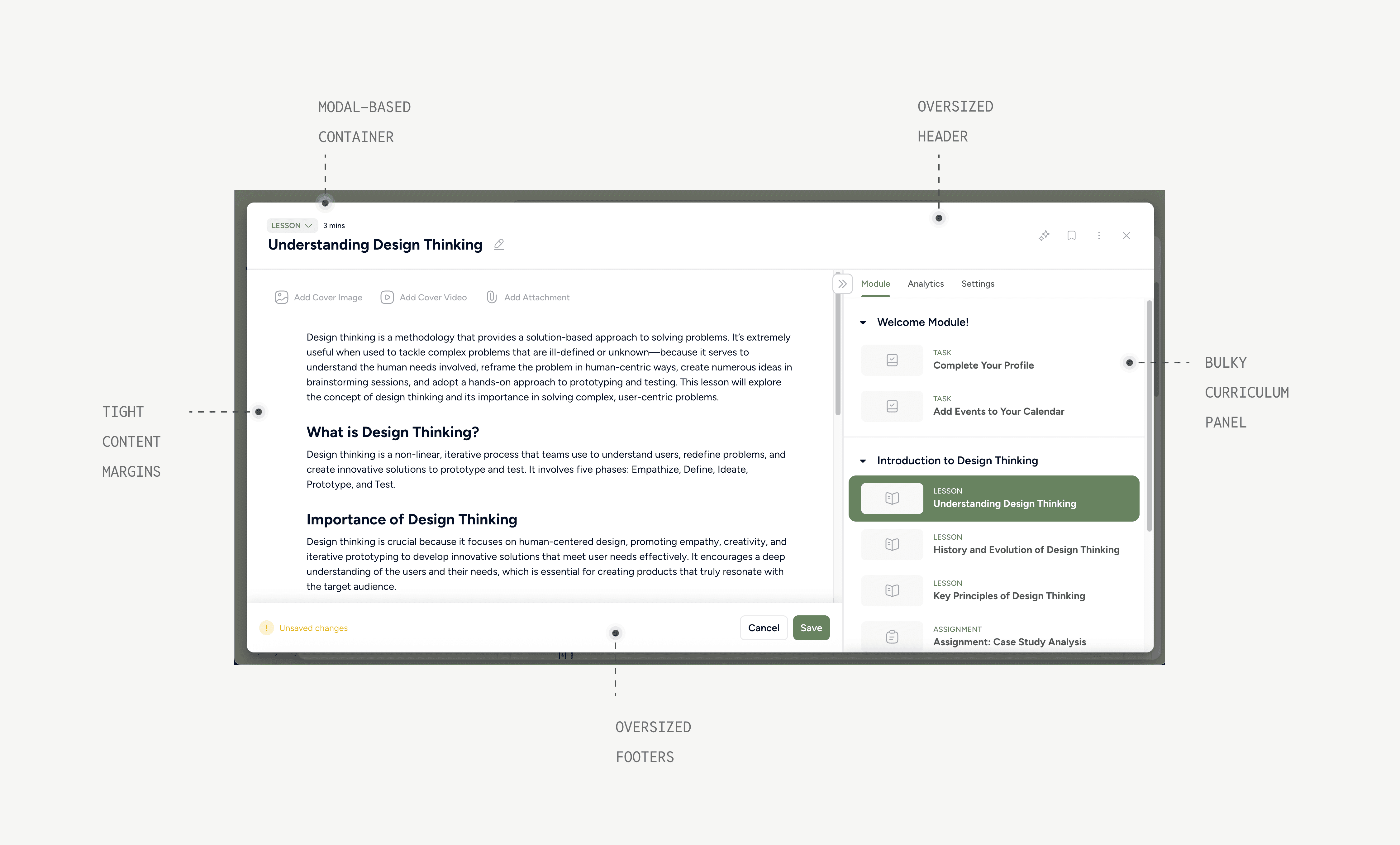 The existing lesson page had structural limitations that made introducing an audio player genuinely complex. Rather than designing around the debt, I flagged it, proposed page-level changes to leadership, and worked on both tracks simultaneously.
