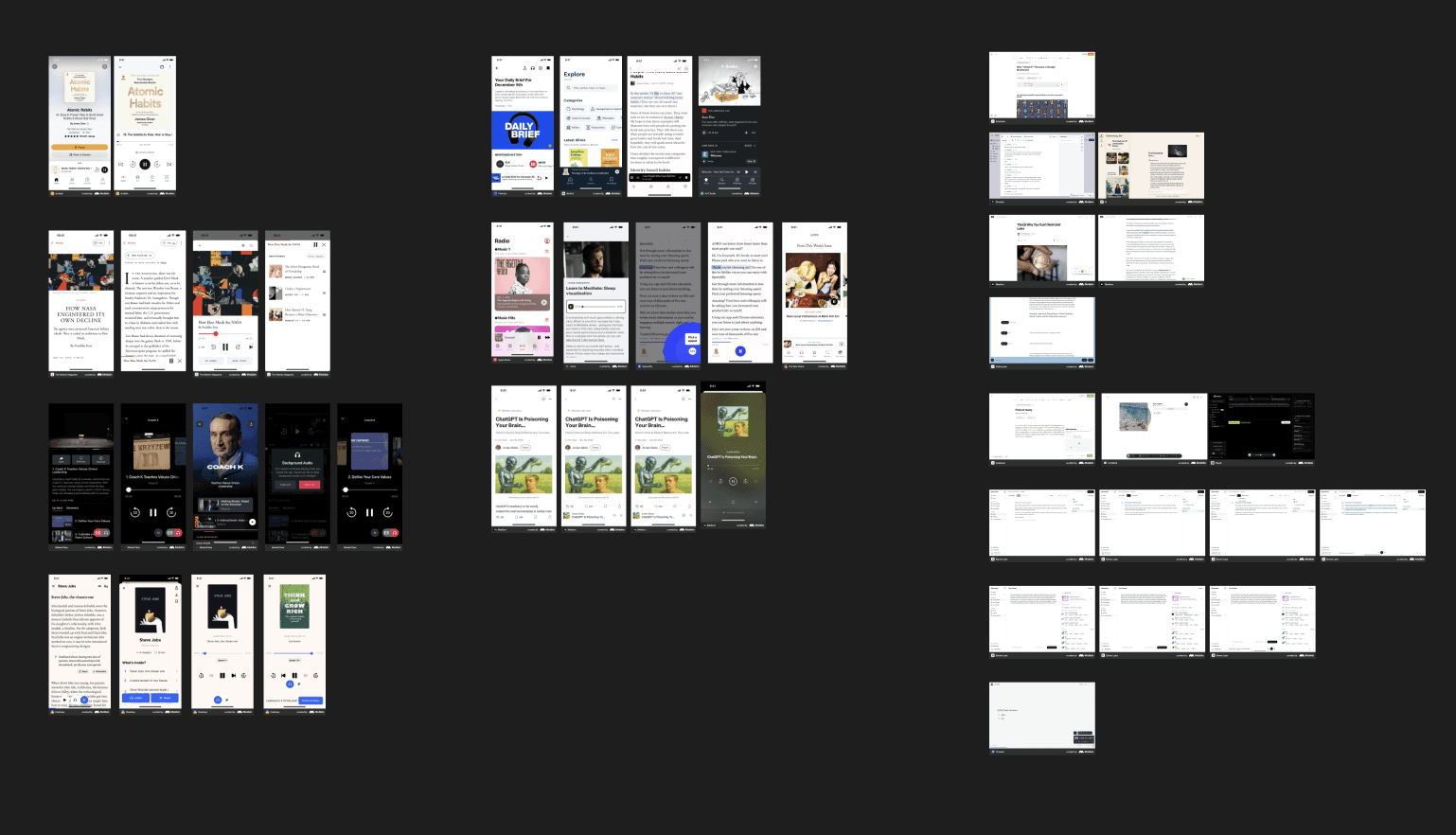Interaction patterns were deliberately grounded in familiar audio UX paradigms, using Mobbin as a reference point to ensure the experience felt intuitive from day one.