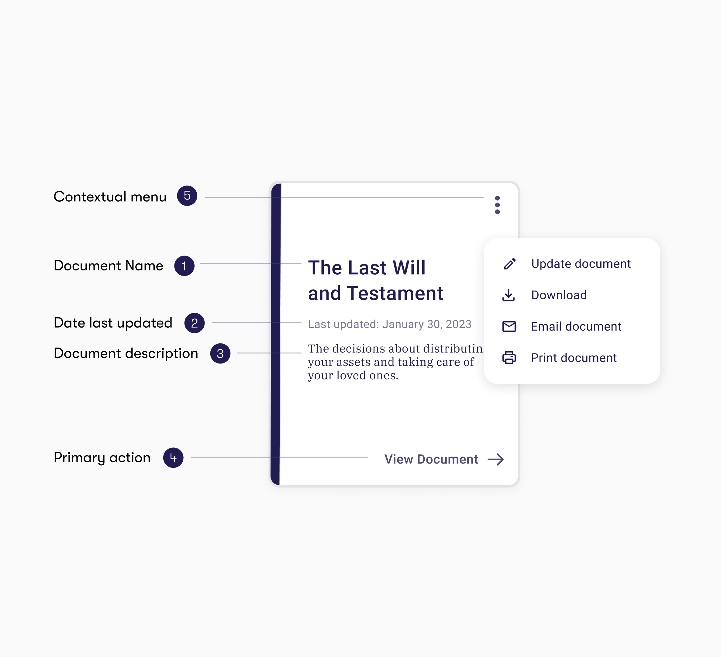 Ensure the component & layout design could extend to new document types and actions.