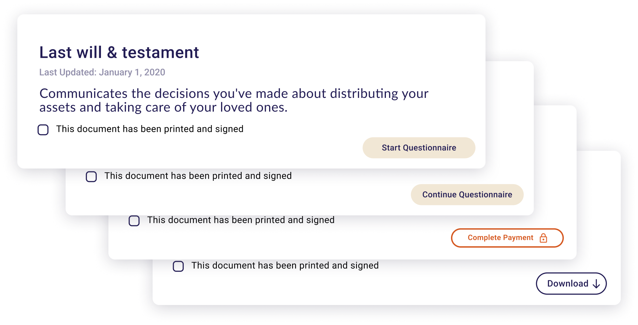 How might we redesign the Documents page so that users can understand and navigate the estate planning process with confidence and clarity?