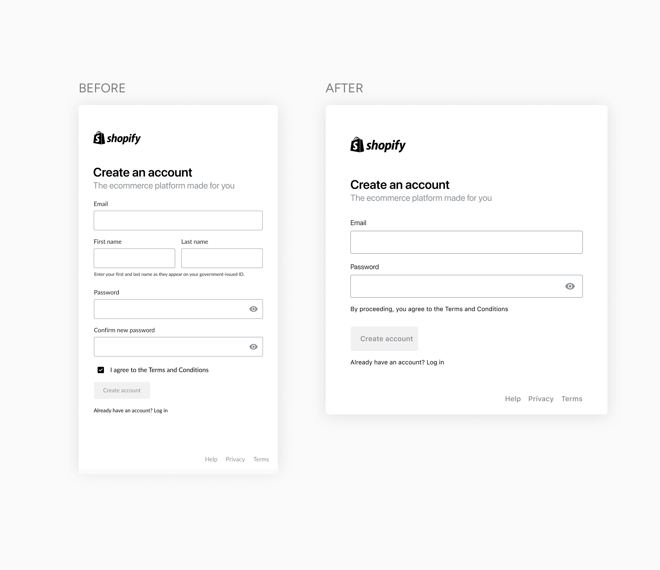 3 years later, an earlier iteration of the Google signup screen is now the default experience shown to every new Shopify user, a page that sees over 200,000k visits daily.